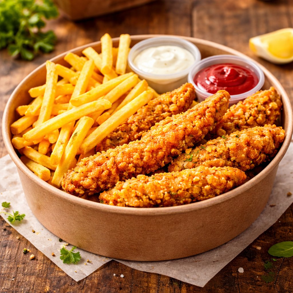 Spicy French Fries, Crispy Chicken Greast , With Sauce
