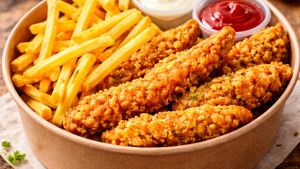 Spicy French Fries, Crispy Chicken Breast, With Sauce