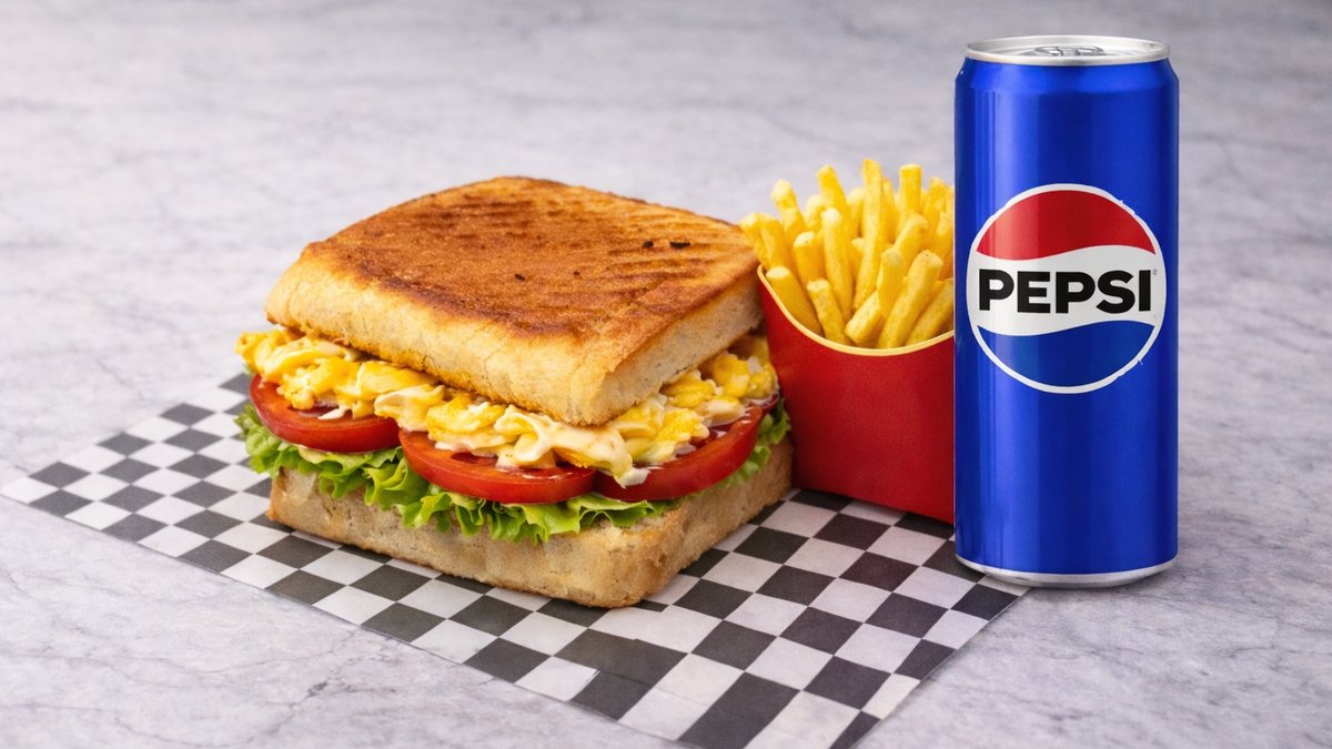 Homemade Hokkaido Bread, Scrambled Eggs, Cheddar, Tomato, Lettuce, Dill, Special Sauces, Spicy Potatoes + Drink