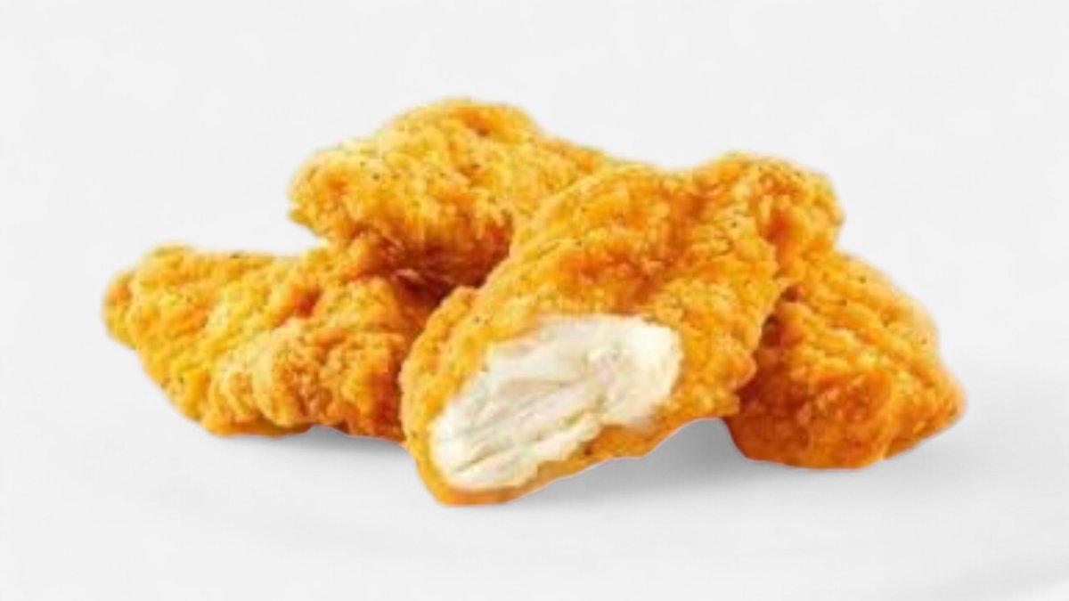 Crispy, tender chicken strips, a perfect snack or appetizer. Chicken Fillet, Breadcrumbs, Sauce.
