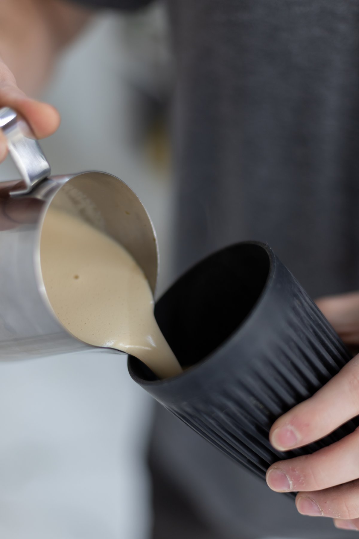 espresso, ginger, ginger cookie syrup, cinnamon, cream, milk