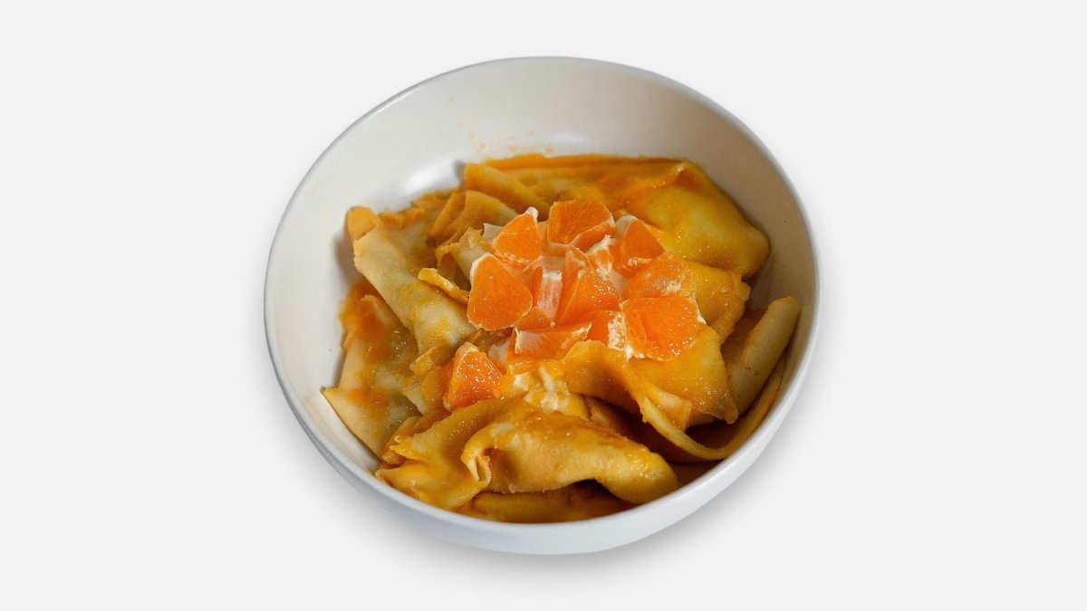 crepes, orange syrup, tangerines, sweet cream cheese mousse