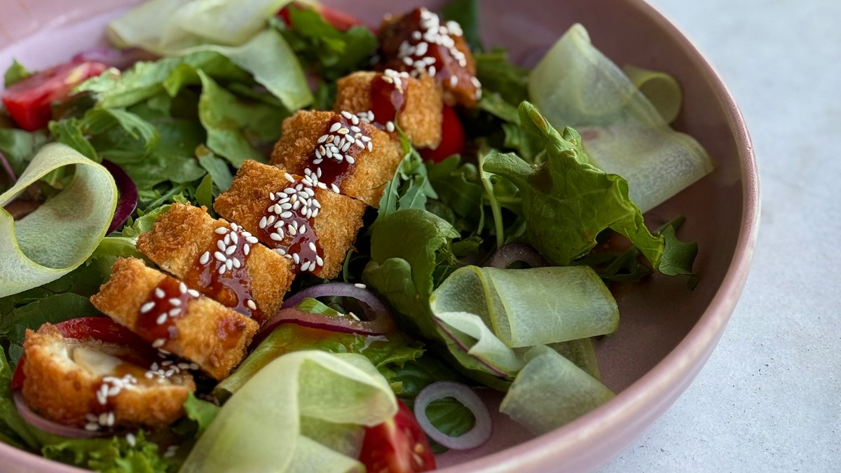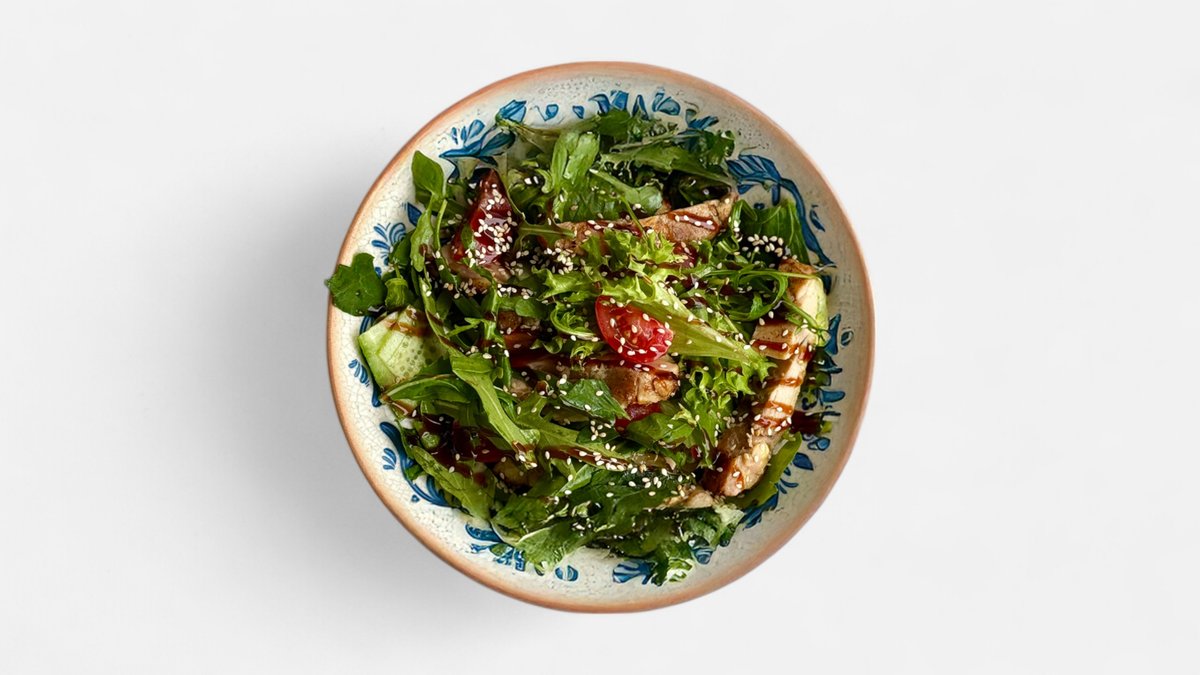Tender sous-vide chicken thigh, oven-roasted to perfection. Served with teriyaki sauce and a crisp fresh salad.