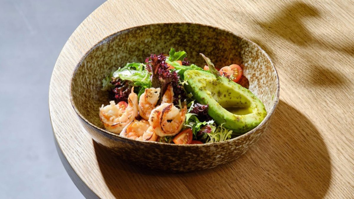 Tiger shrimp, lettuce, quail eggs, cherry tomatoes, parmesan, croutons and Caesar dressing