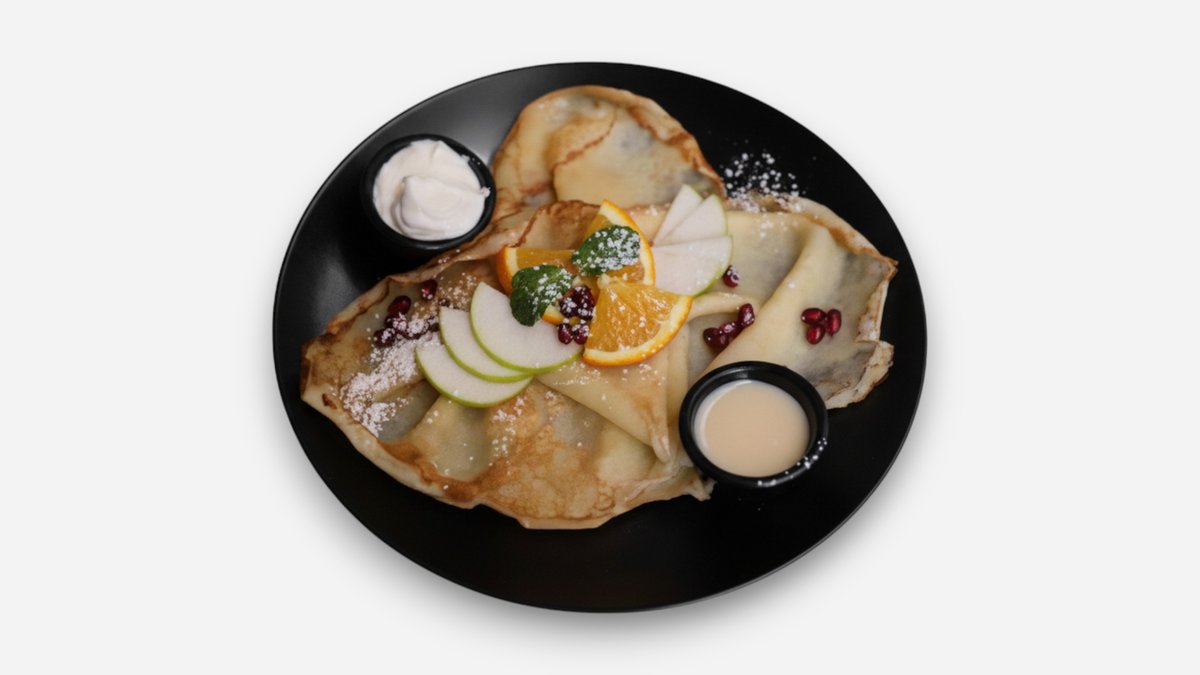 Sweet Crepes with Sour Cream and Fruits