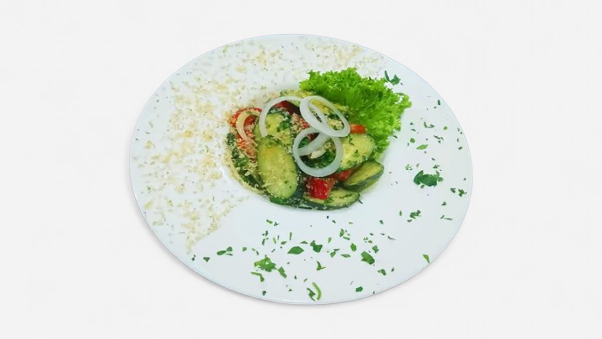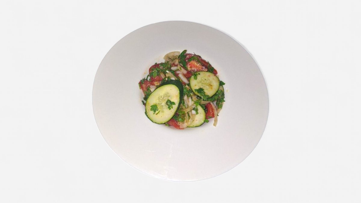 კიტრი,პომიდორი,ნიგოზი,ხახვი,მწვანილები.