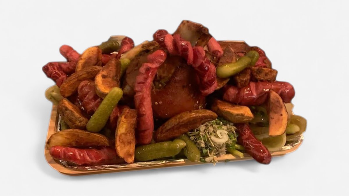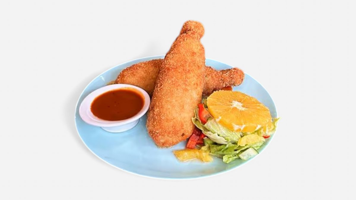 ქათმის ფრთები,ქათმის ჩხირები,მოცარელას ჩხირები,ელარჯის ბურთები,ხახვის რგოლები,მექსიკური კარტოფილი,პანირებული კალმარები,ბარბექიუს სოუსი,მექსიკური სოუსი,ჩილის სოუსი.