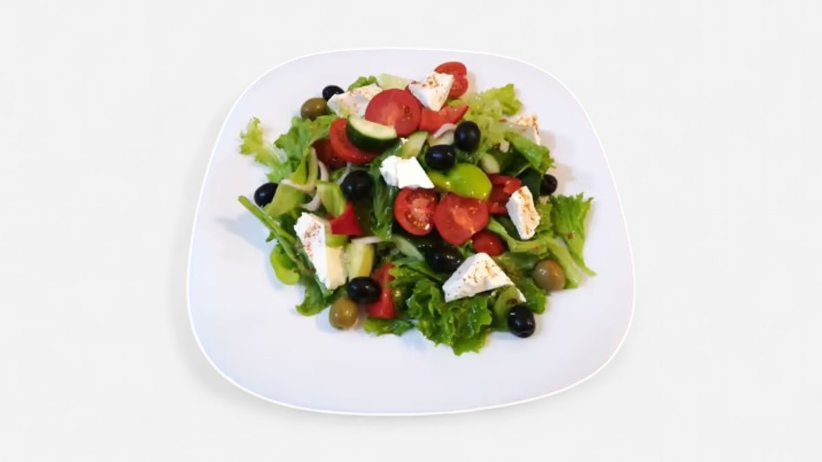 კიტრი,პომიდორი,ზეთისხილი,ბულგარულები,ფეტა,წითელი ხახვი.