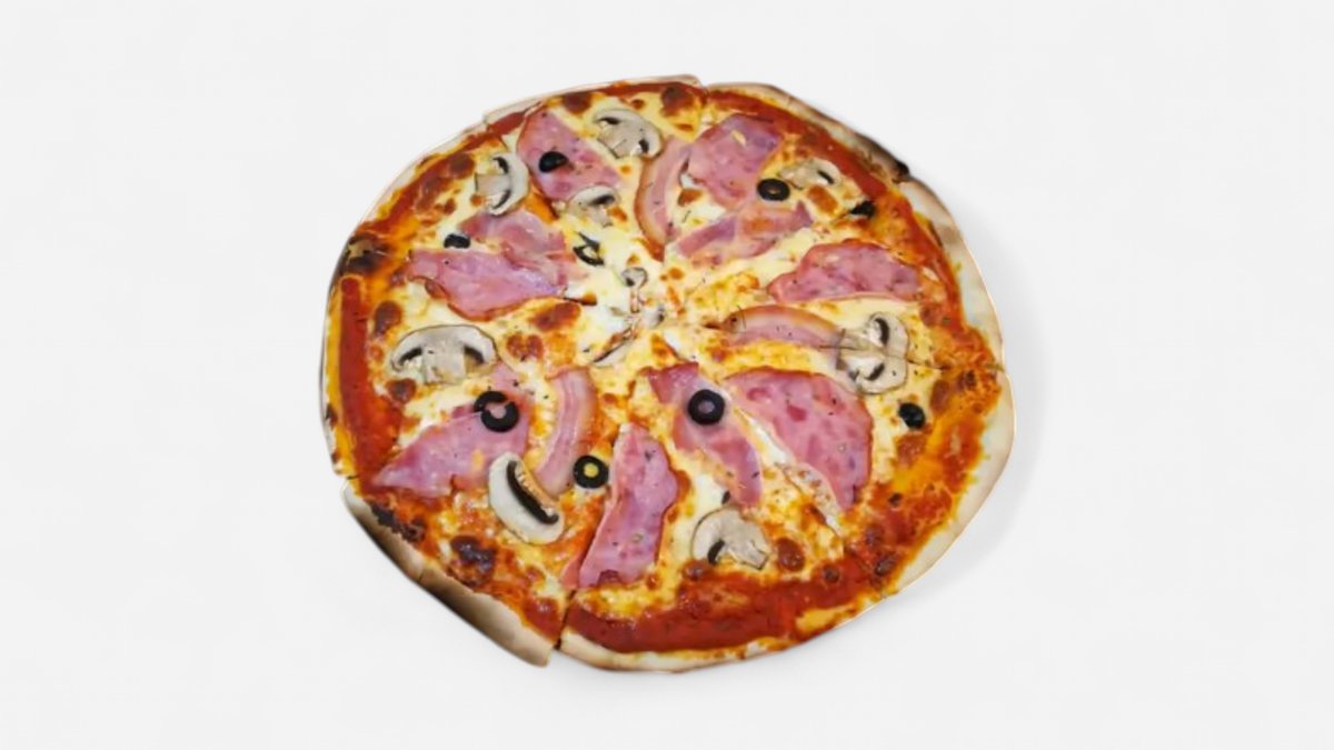 პიცის ტომატი,მოცარელა,ლორი,ბეკონი,სოკო,ზეთისხილი.