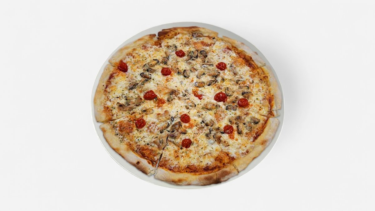 ზღვის პროდუქტების მიქსი,პიცის ტომატი,მოცარელა.