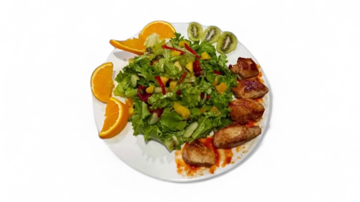 ქათმის ფილე,ბოსტნეული,სალათის ფურცელი.