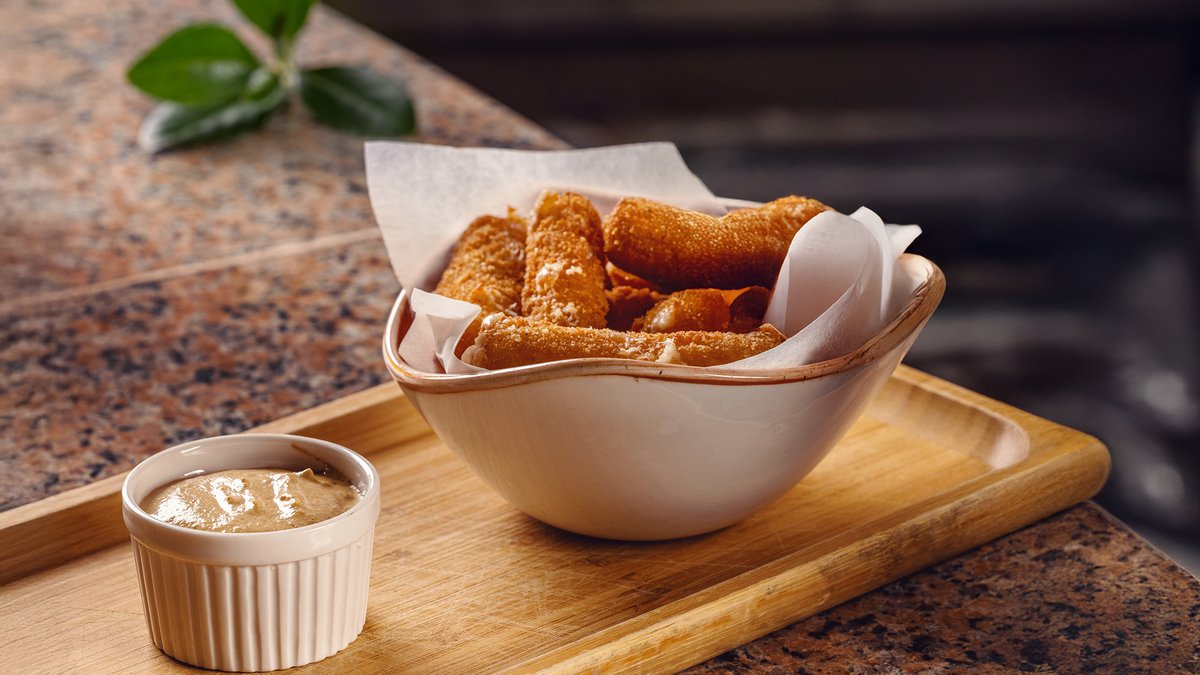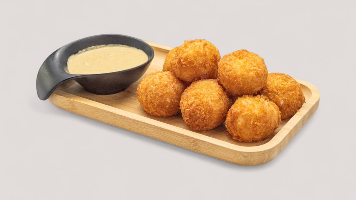 საფანელში ამოვლებული ელარჯის ბურთულები ბაჟეს სოუსით 9ც.
