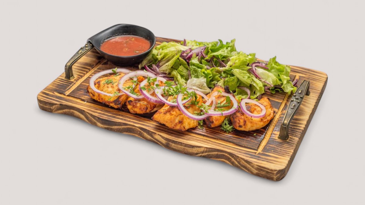შემწვარი ქათამი, ბულგარული წიწაკა, ნიორი, ხახვი, ტაპასის პური, ორეგანო, პარმეზანი ყველი, გარნიარად სალათის ფოთოლი და დაჭრილი პომიდორი