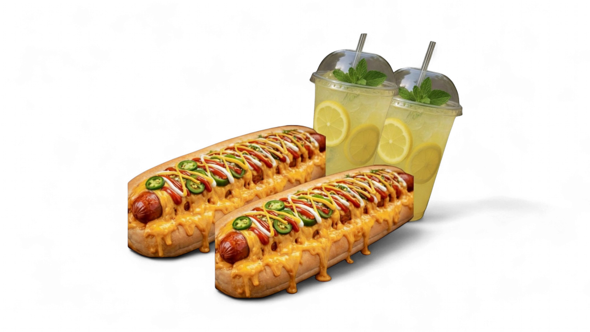 Two XL jalapeño hotdog + Two lemonade