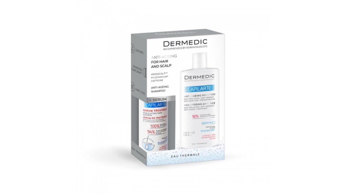 დერმედიკი-ნაკრებიCAPILARTEთმის ცვენის შრატი150მლ+ANTI-AGING შამპუნი300მლ