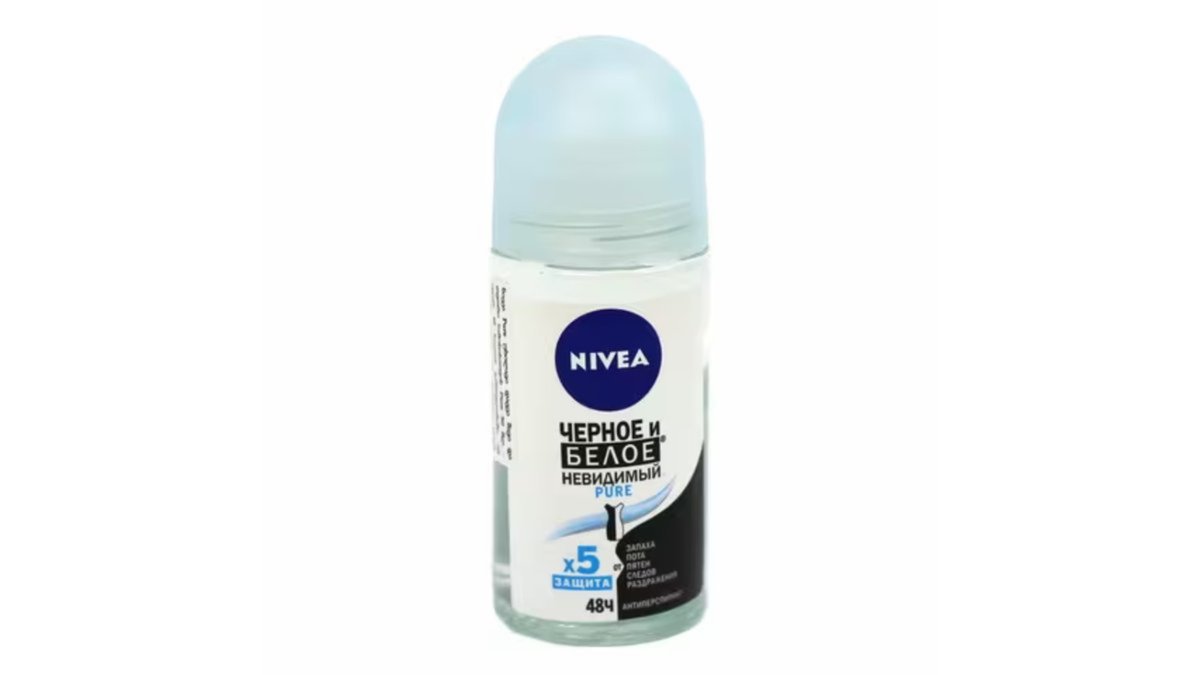 ნივეა ანტიპერსპირანტი ბურთულა უხილავი დაცვა შავ და თეთრი ფერის ქსოვილზე 50 მლ/4005900035264 1ც