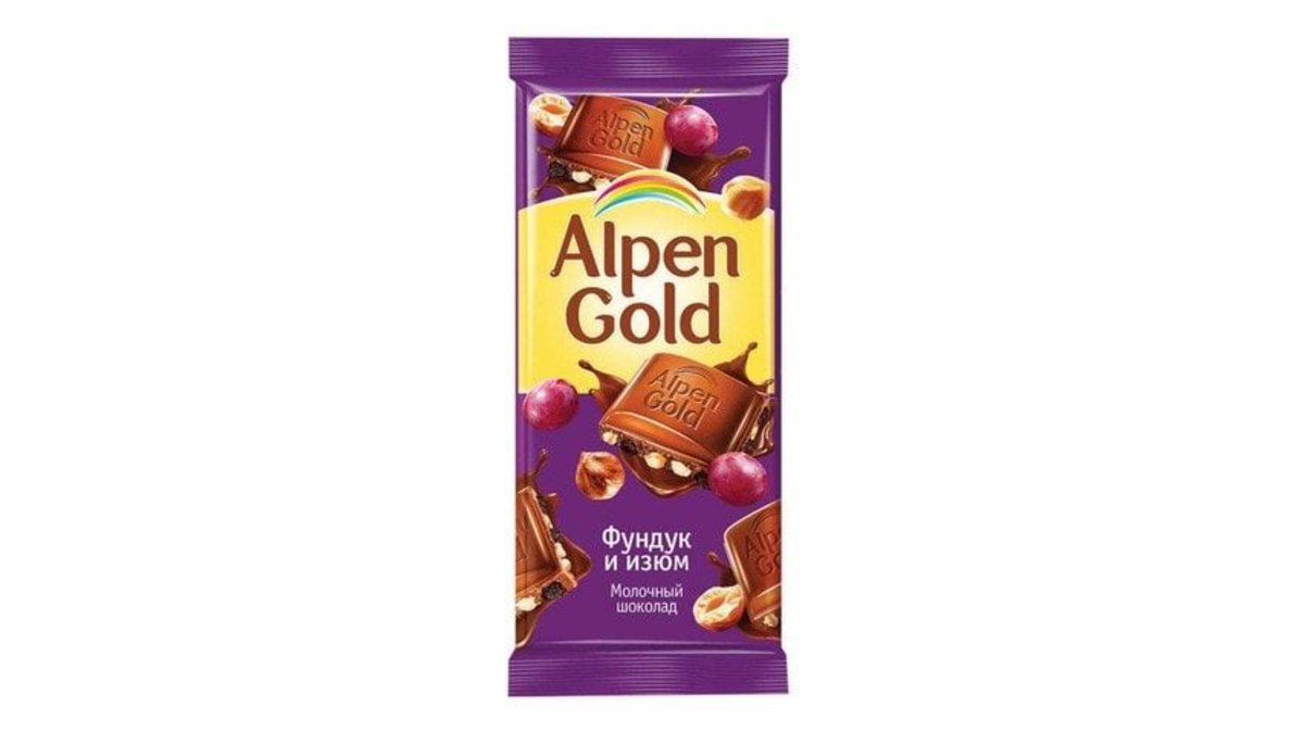 ალპენ გოლდი რძიანი შოკოლადი თხილით და ქიშმიშით 85 გრ/7622202397318