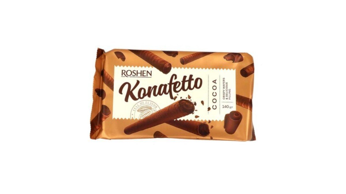 როშენი ვაფლის რულონები კონაფეტტო კაკაოს შიგთავსით 140 გრ/4823077616402 1