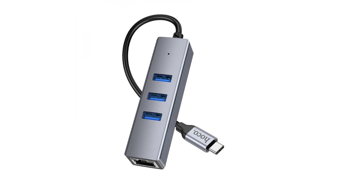 ჰაბი Hoco HB34 Easy link Type-C Gigabit network adapter(Type-C to USB3.0*3+RJ45) - 5814