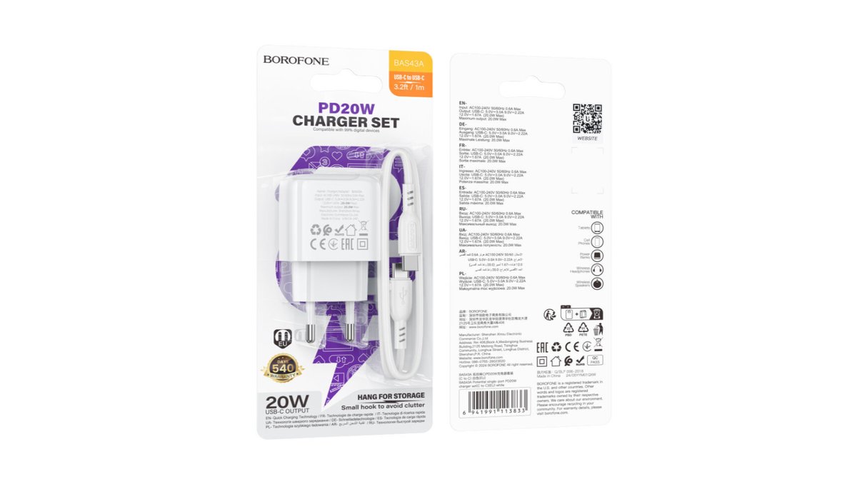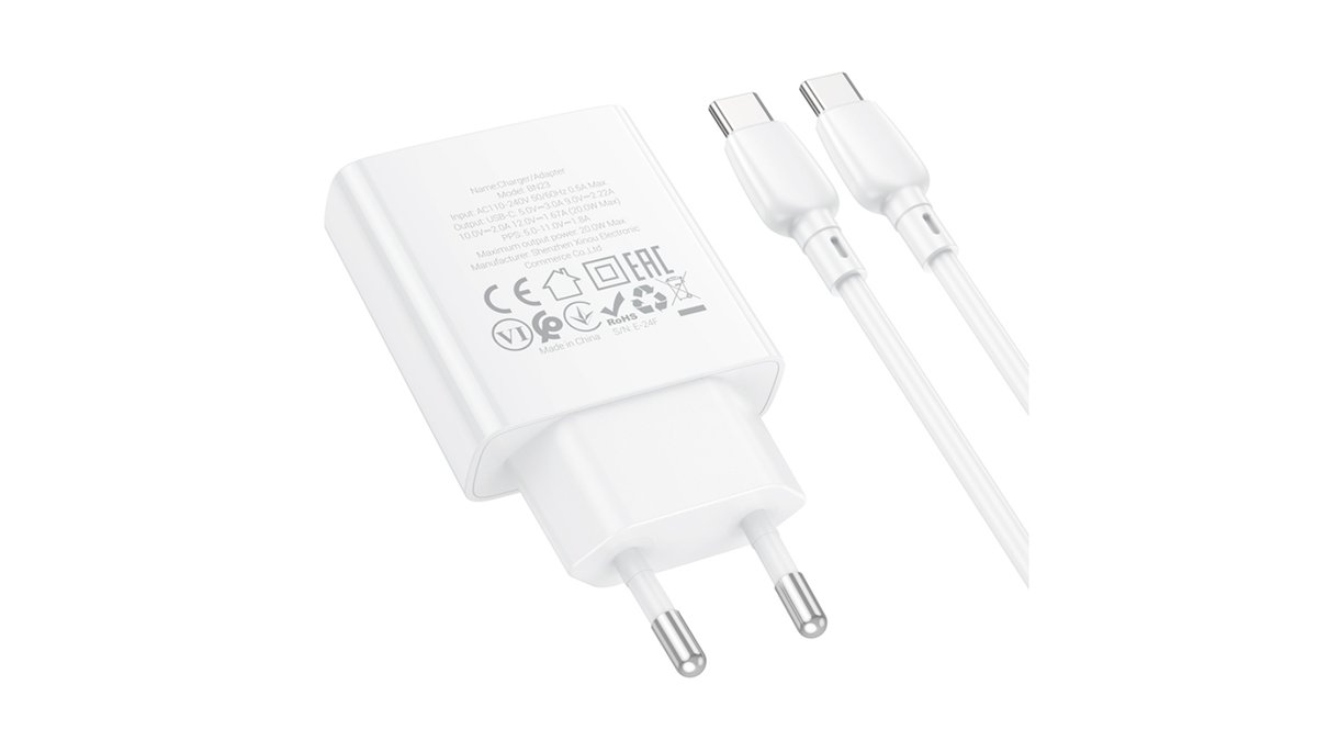 Baseus GaN5 Fast Charger(mini) 1C 20W EU Cluster Black(With: Baseus Dynamic 3 Series Fast Charging Data Cable Type-C to Type-C 100W 1m Cluster Black) - 6999