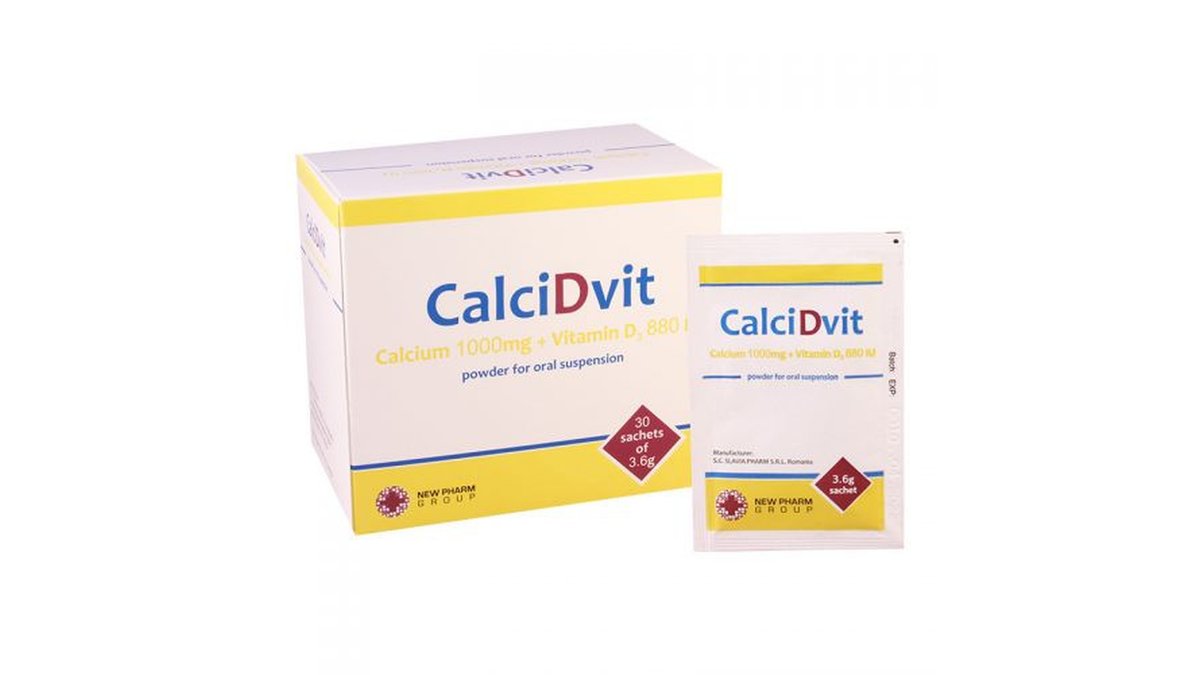 კალციდვიტი ფხვნილი სუსპენზიის მოსამზადებლად 1000მგ+880სე პაკეტი #30