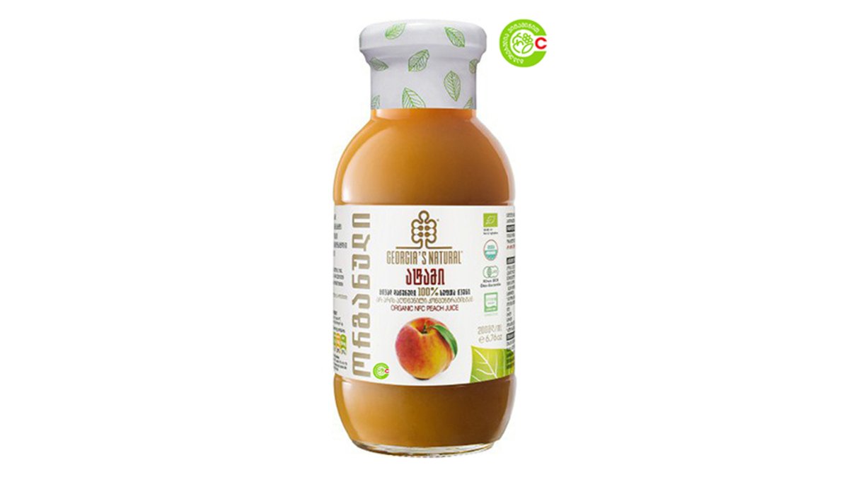 არომაპროდუქტი - წვენი ორგანული ატამი ცივად დაწურული 100% სუფთა წვენი 200მლ 0529