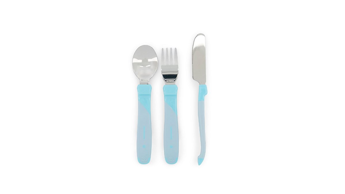 ტვისტშეიკი - სასწავლო კოვზი/დანა/ჩანგალი უჟანგავი ფოლადი ცისფერი /12თვ+/ 2100