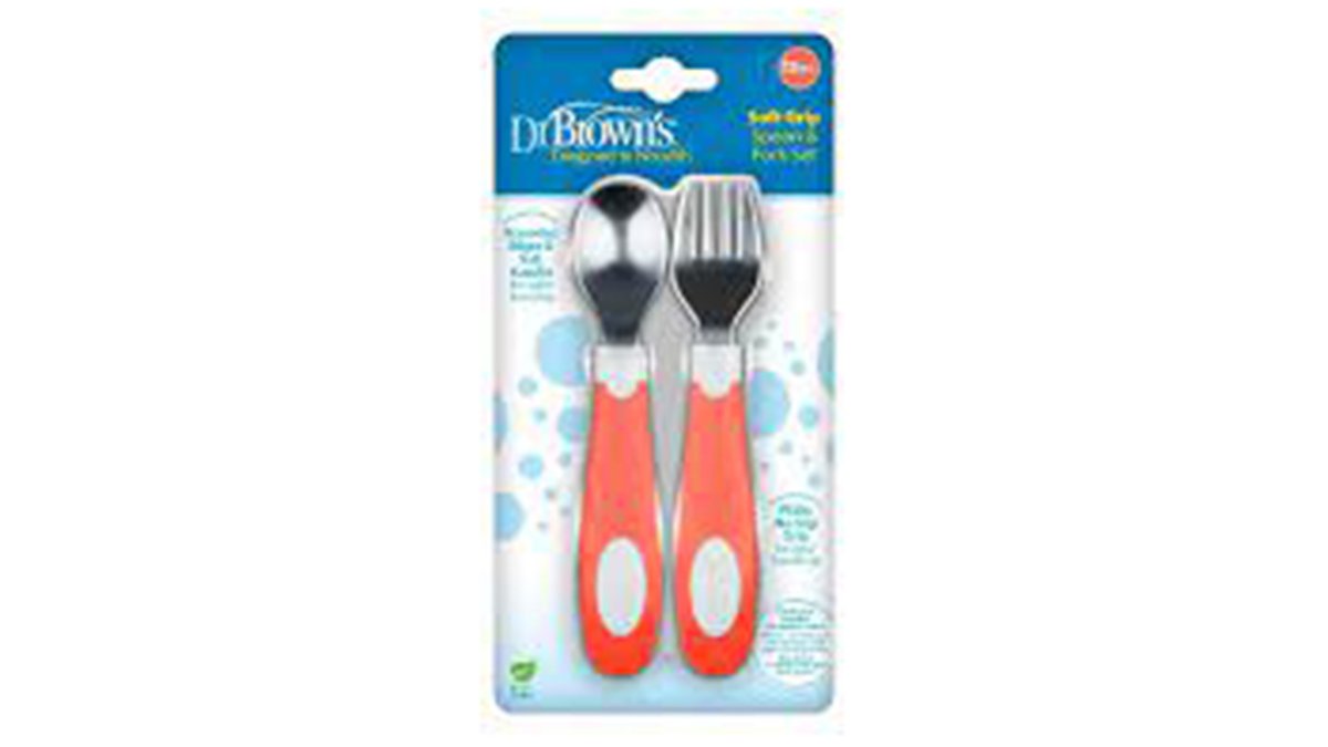 დოქტორ ბრაუნი - კოვზი და ჩანგალი ლითონის, რბილი სახელურით, მარჯნისფერი 4400