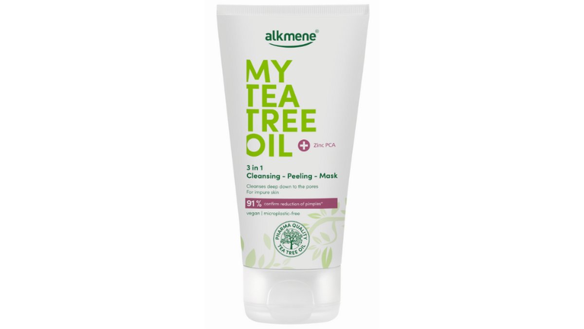 ალკმენე - ავსტრალიური ჩაის ხის ზეთი სახის პილინგი/ნიღაბი 3-1ში გამწმენდი მგრძნობიარე/პრობლემური კანის ვეგანური 150მლ 3130/0207/4044