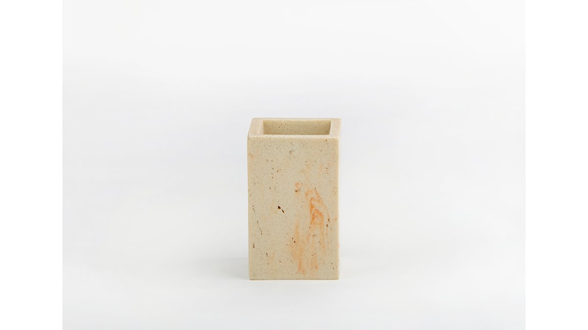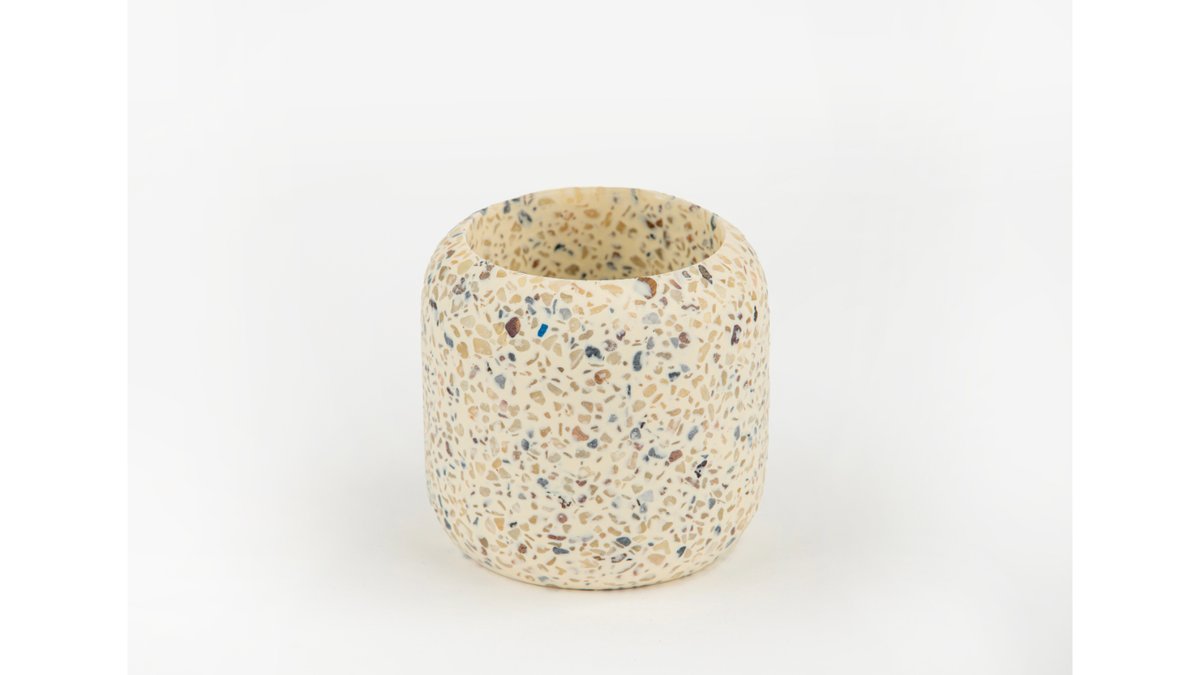 კბილის ჯაგრისის ჩასადები ჭიქა - KARO POLYRESIN / TERRAZZO TOOTHPASTE DISPENSER 9X9X8.3 CM ECRU
