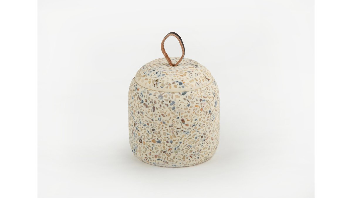 ბამბის დისკებისა და ჩხირების სათავსო - KARO POLYRESIN / TERAZZO COTTON 9,8X9,8X10,3 CM ECRU