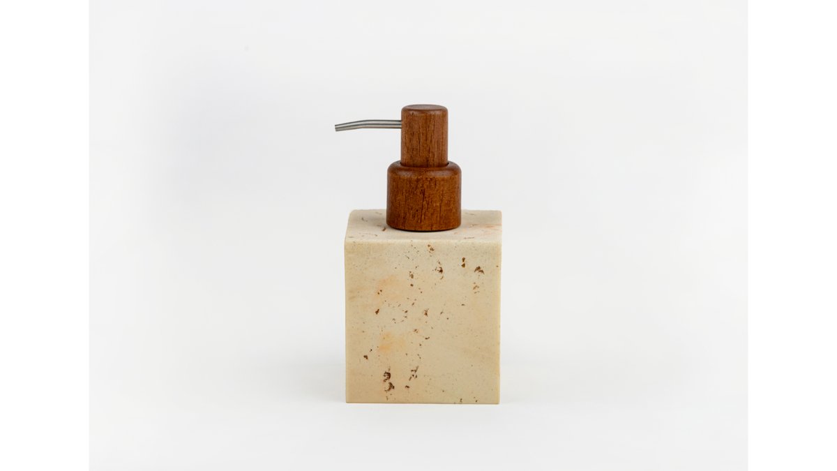 თხევადი საპნის დისპენსერი - KARO POLYRESIN / TERRAZZO LIQUID SOAP DISPENSER 9.5X9.5X15.4 CM ECRU