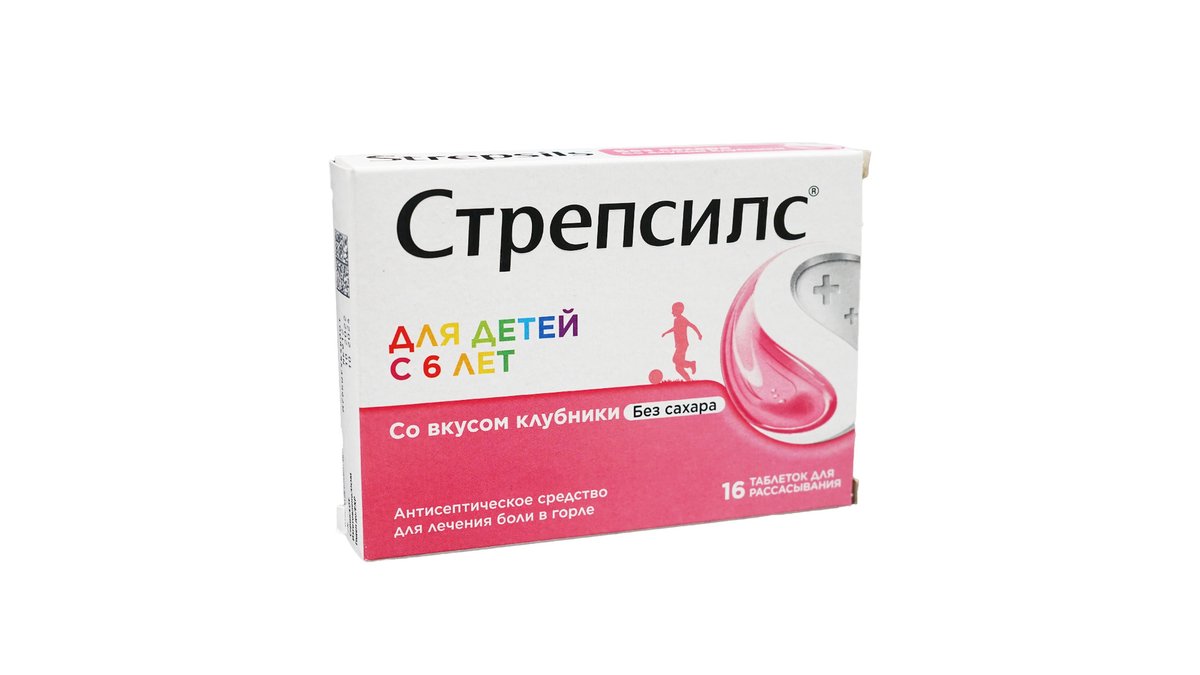 Strepsils - სტრეპსილსი საბავშვო უშაქრო მარწყვი 16 ტაბლეტი