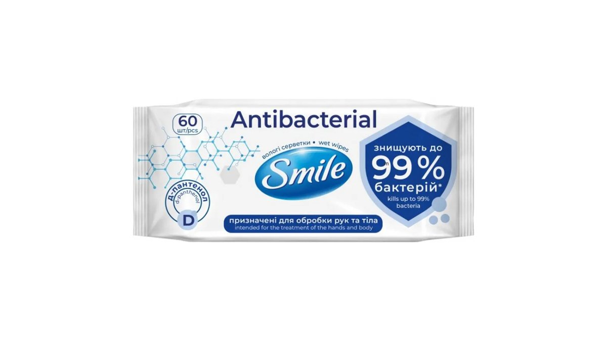 სმაილი სველი ხელსახოცი ანტიბაქტერიული პანთენოლით 60ც