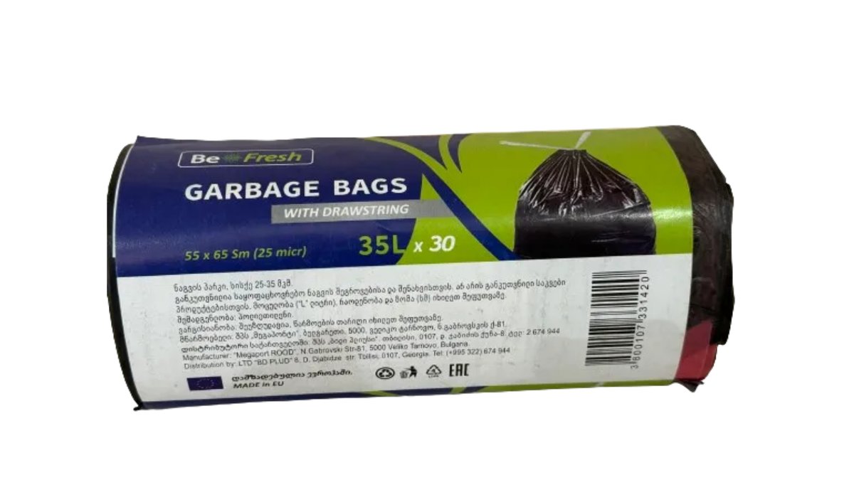 ბიფრეში ნაგვის პარკი შავი თასმით 30ც (55x60სმ 35ლ)