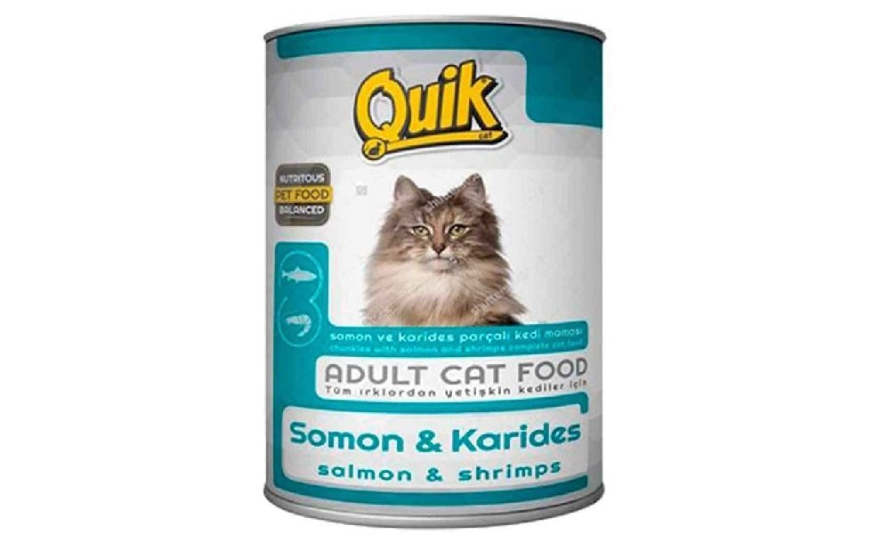 Quik 415გრ კატის, ორაგული და კრევეტები, კონსერვი (1ც)