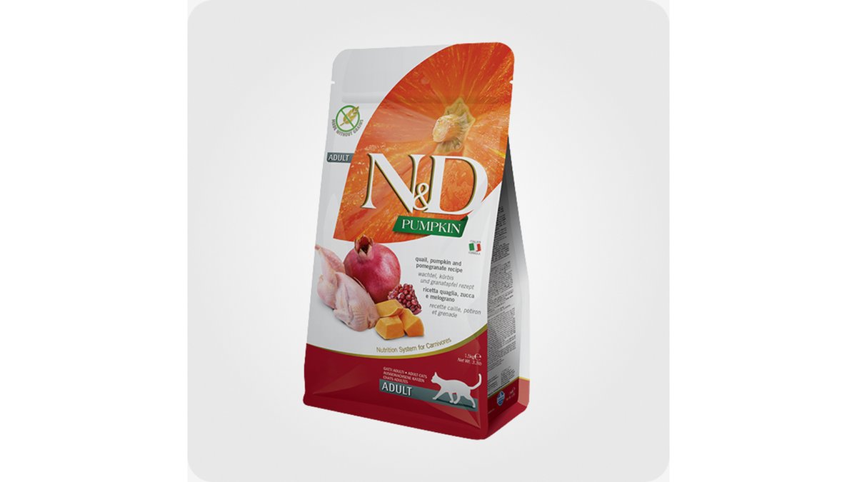 N&D კატის, გოგრა, მწყერი & ბროწეული. ზრდასრული კატისთვის კგ 1,5