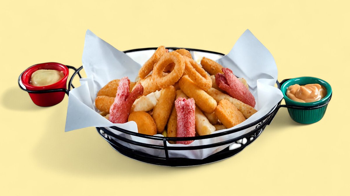 potatoes, chicken, onion rings
