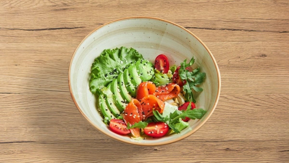 Avocado, Salmon, Cherry Tomato, Sesame, Lettuce Mix