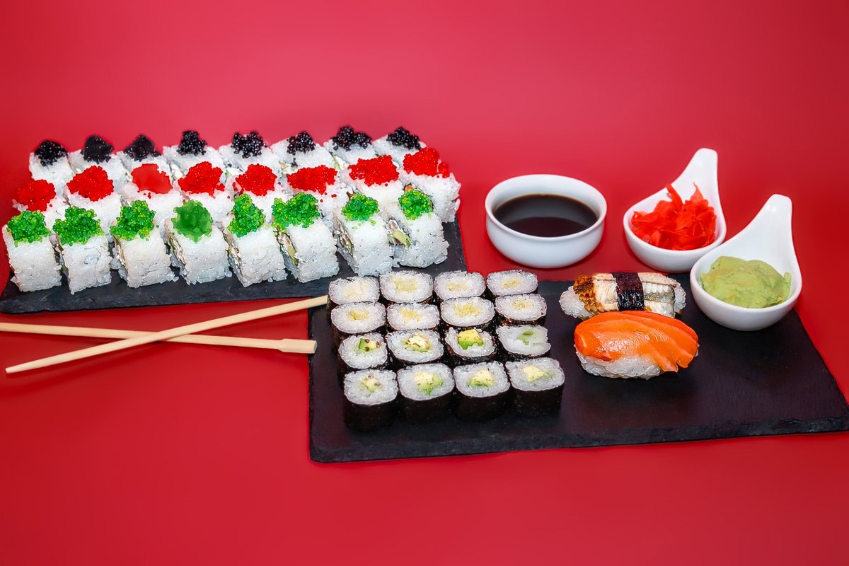ბრინჯი, ნორი, ავოკადო, ჯინჯერი, ვასაბი, სოიოს სოუსი