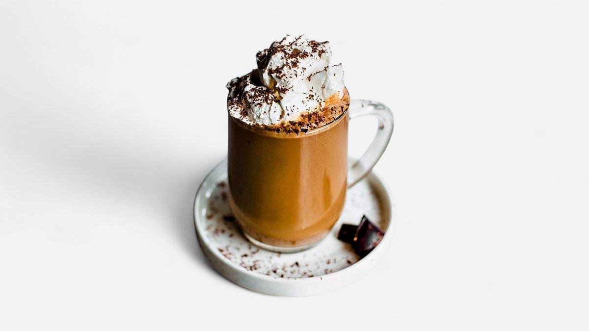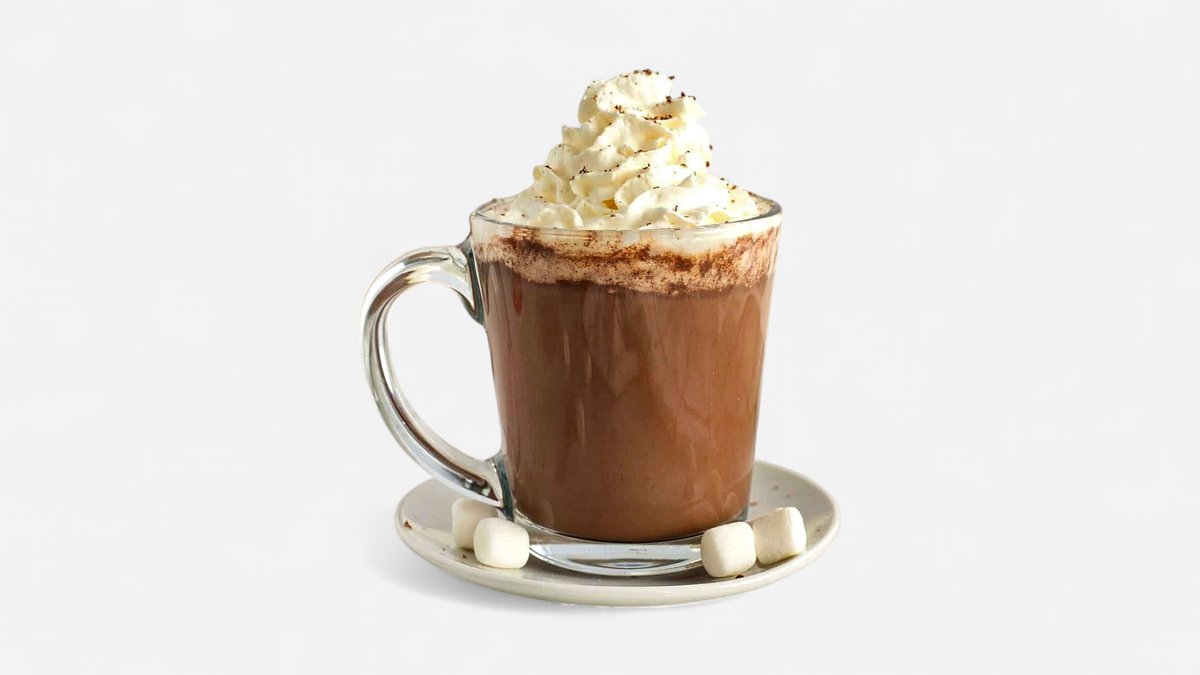 warm and sweet classic made with steamed milk and rich chocolate syrup, topped with a generous swirl of whipped cream and a chocolate drizzle.