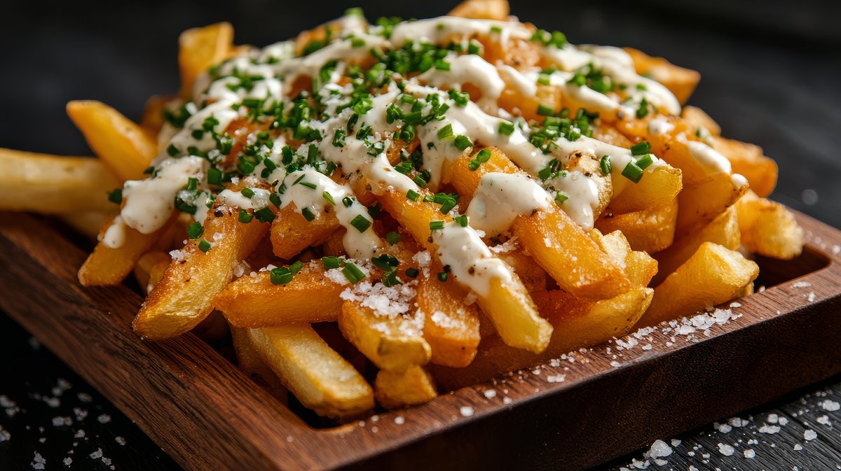 French fries, truffle sauce, parmesan, parsley ,herbs 🌿