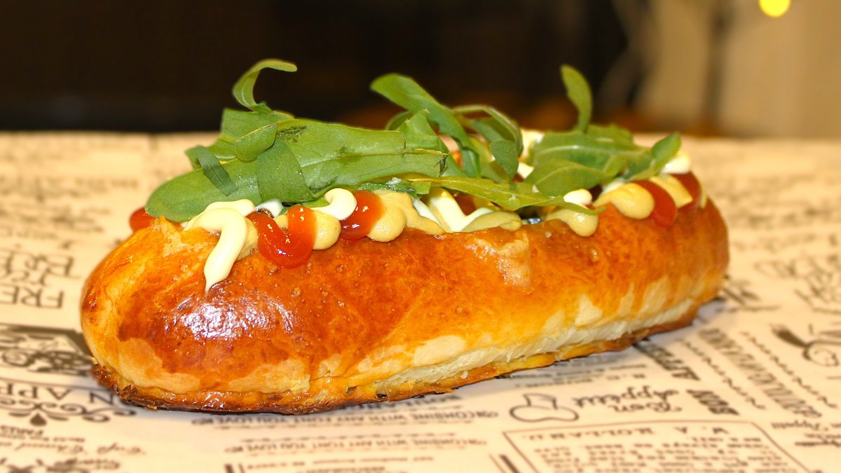 პური, სოსისი, კეჩუპი, მაიონეზი, დიჟონის მდოგვი, მჟავე კიტრი.