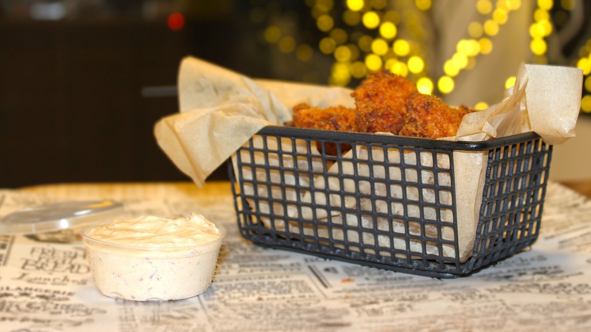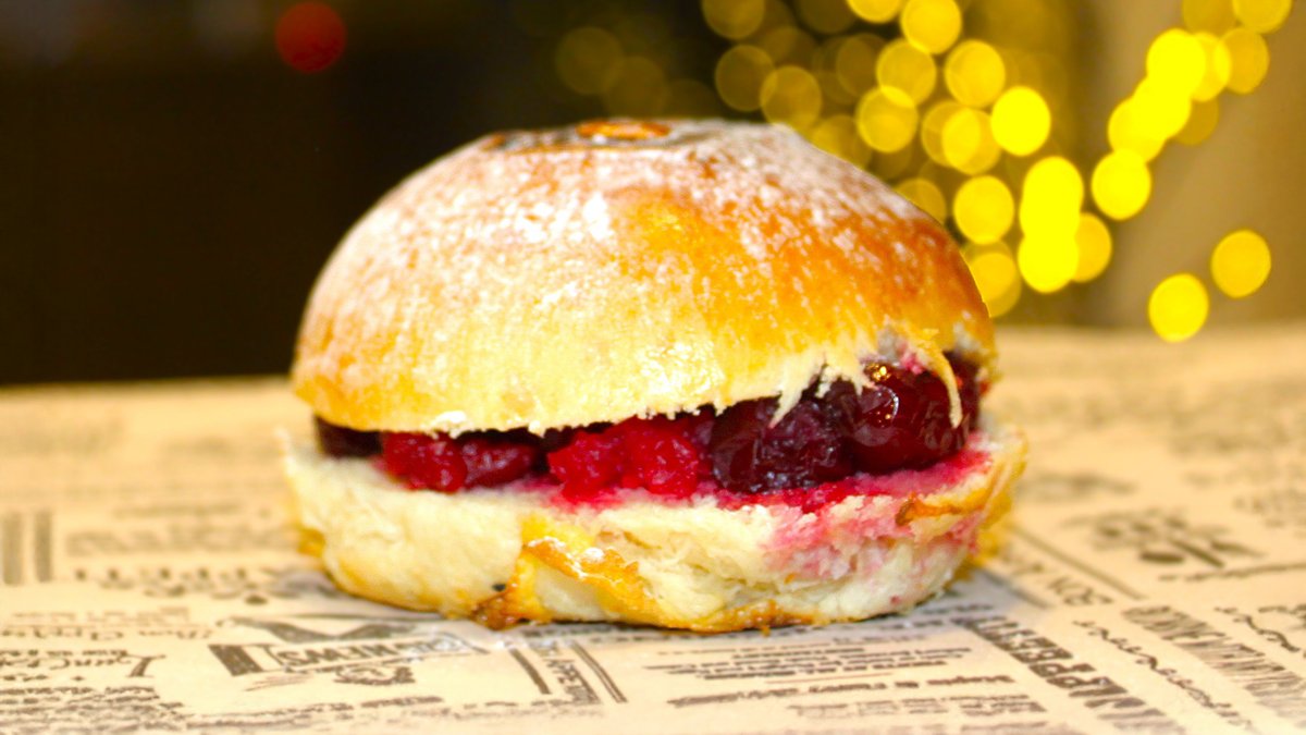ფუნთუშა, საუკეთესო წვნიანი ხორცი, სამმაგი ჩედარის ფირფიტა, მჟავე კიტრი, რუკოლა, მობრაწული კარაქი