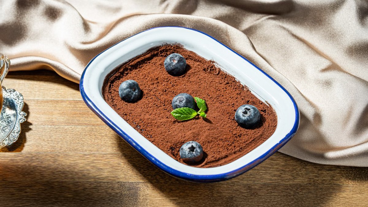 მასკარპონე, სავოიარდის ორცხობილა ყავაში, კაკაოში, ახალ მოცვში, არაქისის სიროფში