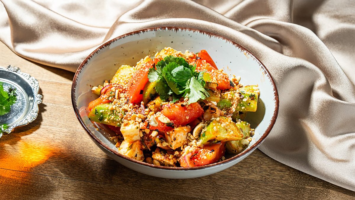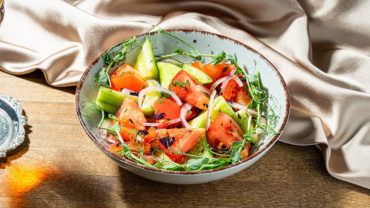 ბოსტნეულის სალათი აჯიკითა და ყველით
