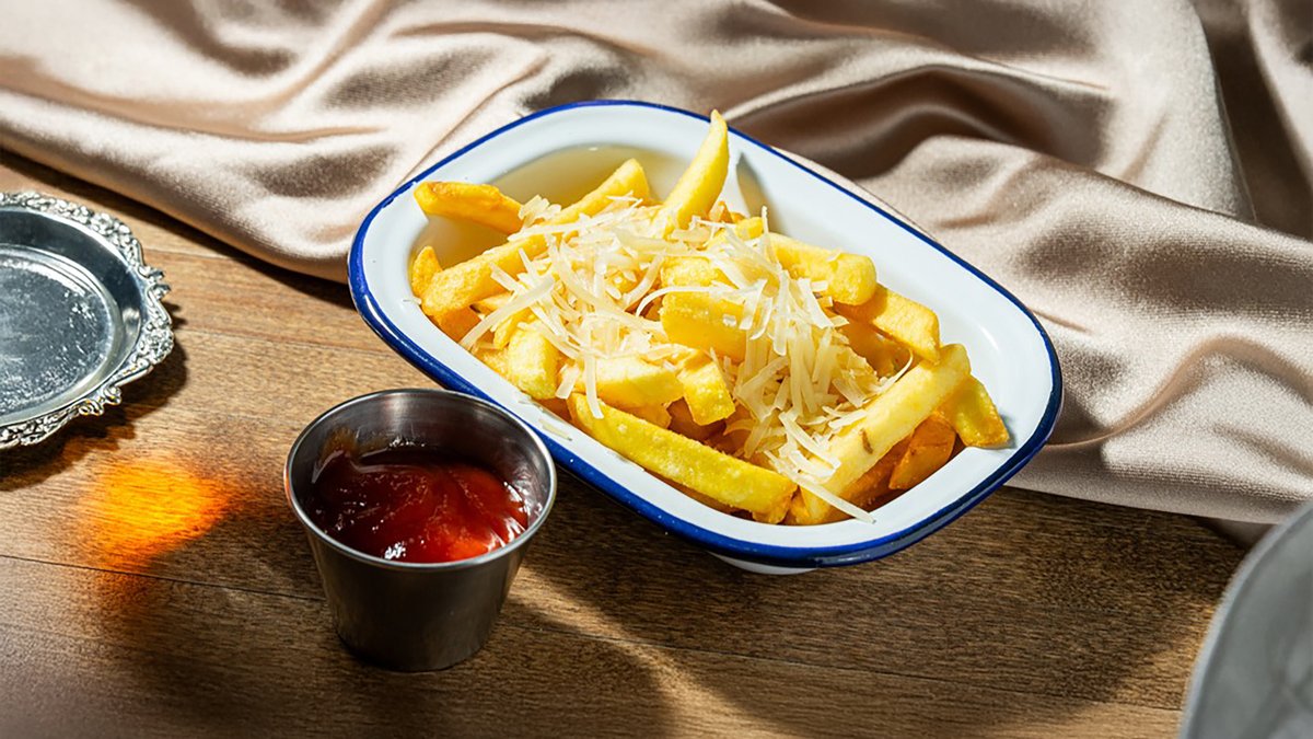 ტრუფელის ფრი პარმეზანით — ხრაშუნა ოქროსფერი კარტოფილი, ზემოდან მოყრილი გახეხილი პარმეზანით და არომატული ტრუფელის ზეთით. მარტივი, მაგრამ ელეგანტური გემო.