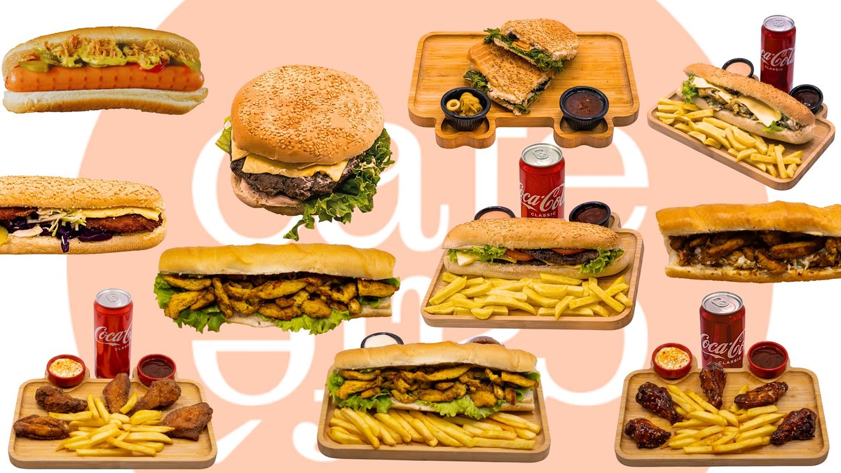 Dough, sausage, ketchup, mayonnaise, Arabic salad, hummus, fries, Coca-Cola