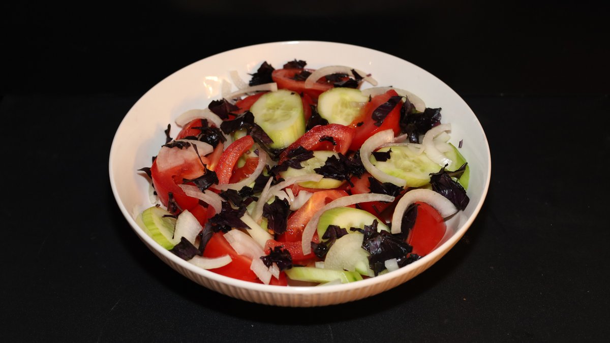 tomato, cucumber, red basil, onion, white vinegar, olive oil