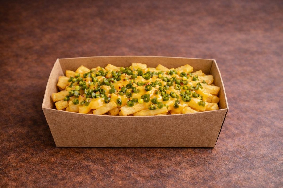 Spicy strips,jalapeno,sause, french fries, oil halal